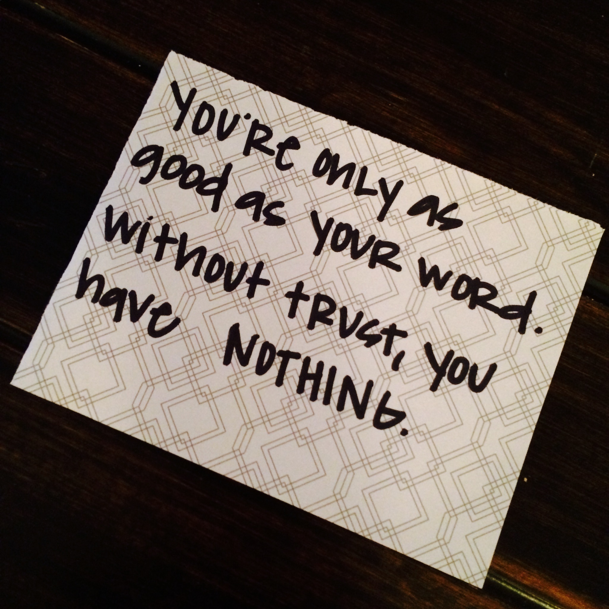 You’ve probably heard the phrase “you’re only as good as your word, and your word is only as good as your actions.” I’ve been struggling a bit with trusting people lately due to their actions and it makes me wonder what happened to loyalty and integrity. If you make a mistake, own up to it. Everyone makes mistakes and life goes on. If plans change or something comes up, just let the other person know instead of leaving them in the dark. If you can’t follow through with something, don’t promise it.