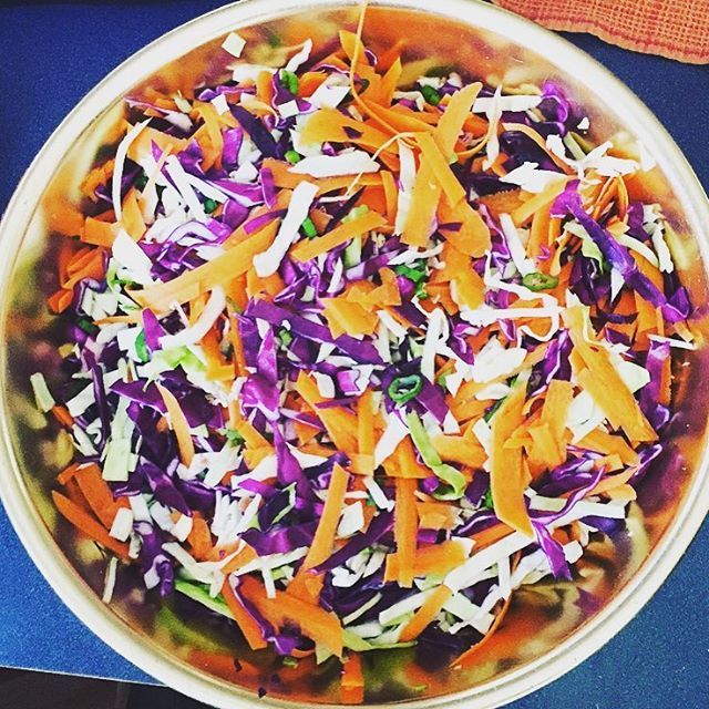 oriental salad Published January 27, 2016 at 640 × 640 in My Whole 30 Journey: Day 9 ← Previous Food prepping an oriental chicken salad made with red and green cabbage, carrots, green onions, pineapple, chicken and homemade Apple Cider Vinegar dressing.